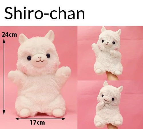You can choose from Rainbow and Shiro-chan, and they each measure 8.7″ x 7.9″ x 5.1″. When you’re not busy putting on fabulous Alpacasso productions, these hand puppets can be propped up to look just like a regular plushie!