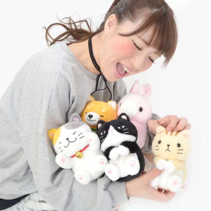 One minute they’re sitting, and the next thing you know, they’re on their back, showing off their tummies for a good scratching. Nemunyan, Toragoro, Shibakororin, and Korousa are your average size plushies who comfortably fit in one hand, and while some of them might not look as enthusiastic, they sure don’t mind if you pet them!