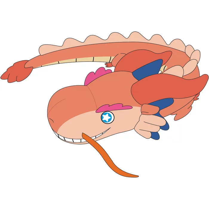 Soaring into the lineup and ready for an adventure is this plushie of the dragon Shanron that Chika, You, and Ruby rode on in the “Dragon Riders” song! The starry-eyed plushie is 31.5″ long and made of soft fabric.