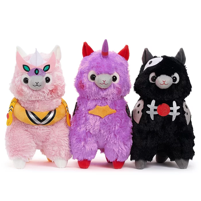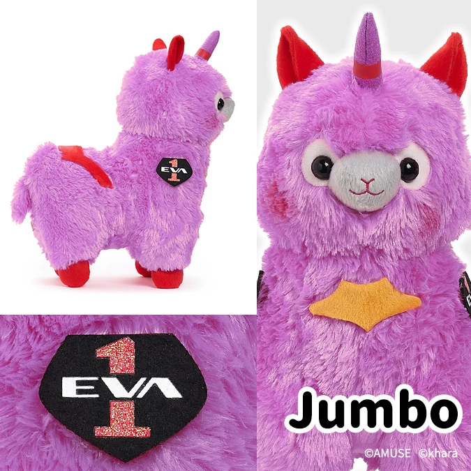Evapacasso are a collaboration between the cute alpaca characters Alpacasso and the hugely popular anime Evangelion. Themed after Unit-01 Awakened Phase, Unit-08 Improvised Combat Configuration, and the Angel which all appear in the series, the characteristics of each have been incorporated into Alpacasssos. The plushies fuse together the cute round eyes of Alpacasso with the characteristic coloring and features from Evangelion.