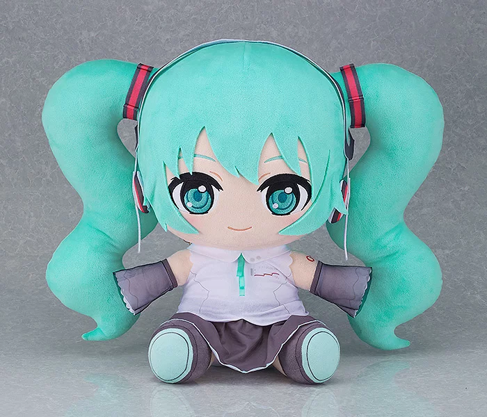 Good Smile Company and Piapro Characters is proud to present a big plushie of Hatsune Miku NewType! Miku-chan, posed sitting, measures a whopping 21.7″ tall. The details for Miku NT’s outfit design have been realized in plushie form, made with real fabric. Her voluminous turquoise twintails and highly detailed eyes are sure to speak to your heart in the form of melody only Hatsune Miku NT can create!