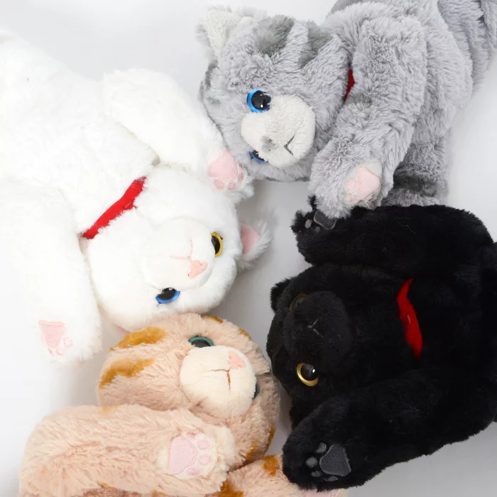 About 18.5” long, 7.1” tall, and 6.3” wide when lying flat, these kitties have embroidered paws and are just as soft as the real thing. Choose Brown, White, Black, or Gray – they will all be happy to sit on your knees or just chill on the couch with you!