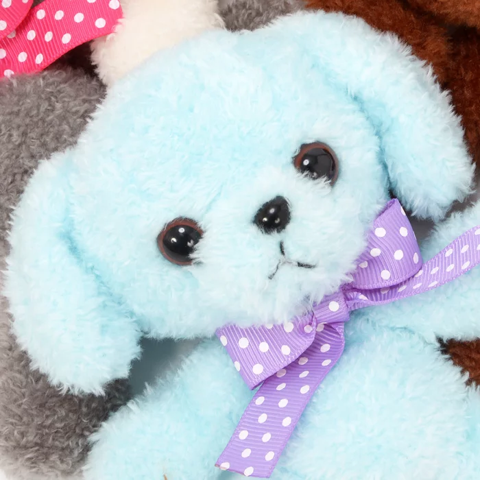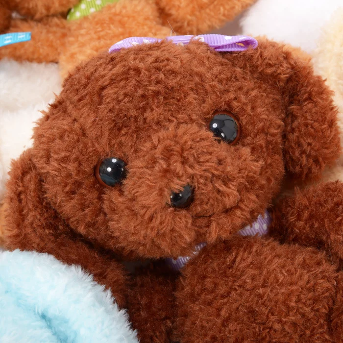 You’ll never mind taking these soft and fluffy little guys for a walk! These plush “toy” poodles have curly hair just like the real thing but they’re also a collection of very stylish guys and gals too as they’re each wearing a fashionable ribbon in a bright color with a classic polka dot pattern.