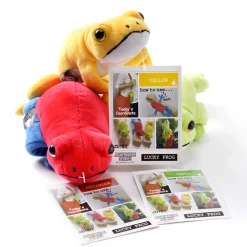 Real frogs can be hard to keep track of – that’s why Sunrise created these colorful little froggy plushies for those craving a different sort of pet! From the Adventure Series, each one is 10.6” x 7.9” x 2” and come in an eye-catching red and blue, green, or yellow.