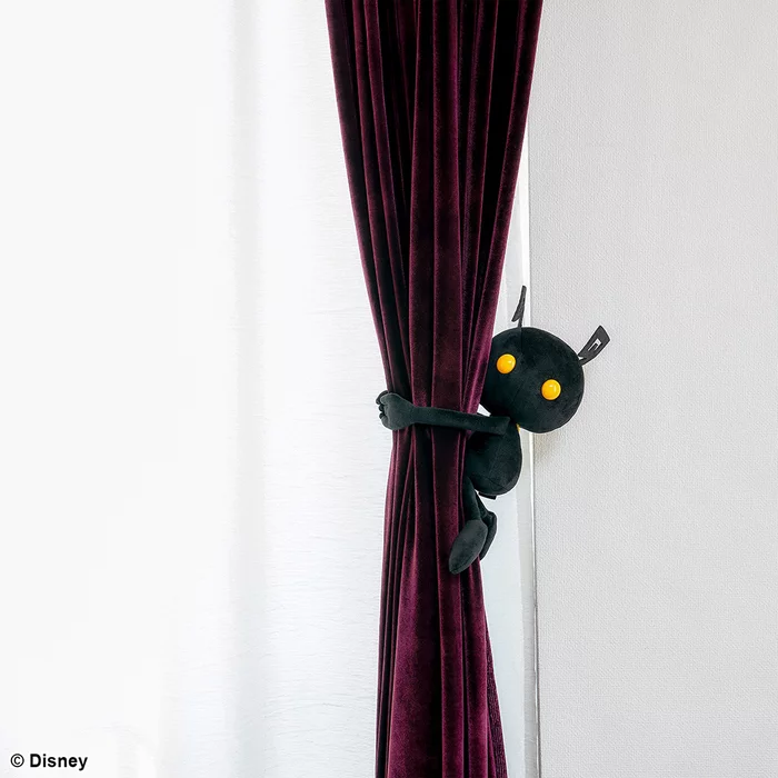 Enjoy the charming world of Kingdom Hearts as part of your decor with these Shadow curtain tieback plushies! The set includes two soft polyester plushies (left and right) that are made to look like they are hanging onto your curtains. Talk about cute AND convenient!
