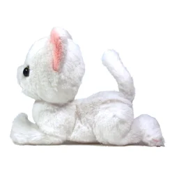 This soft furry kitten can do almost everything a real cat can: It can sit, stand, lie down for a rest, and of course, soothe its ownerβs heart. This little white fella here is 6.5β tall, 5.5β long, and 3.9β wide, it has different colored eyes and its soft paws are embroidered in light pink. It probably likes hiding in boxes, too!
